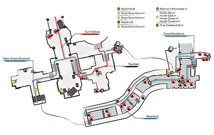 A map of Central Yharnam I made. It includes items, NPCs, lanterns